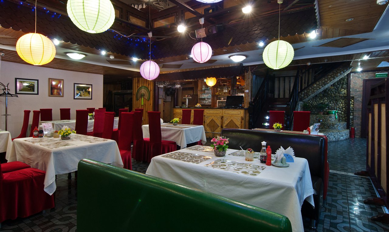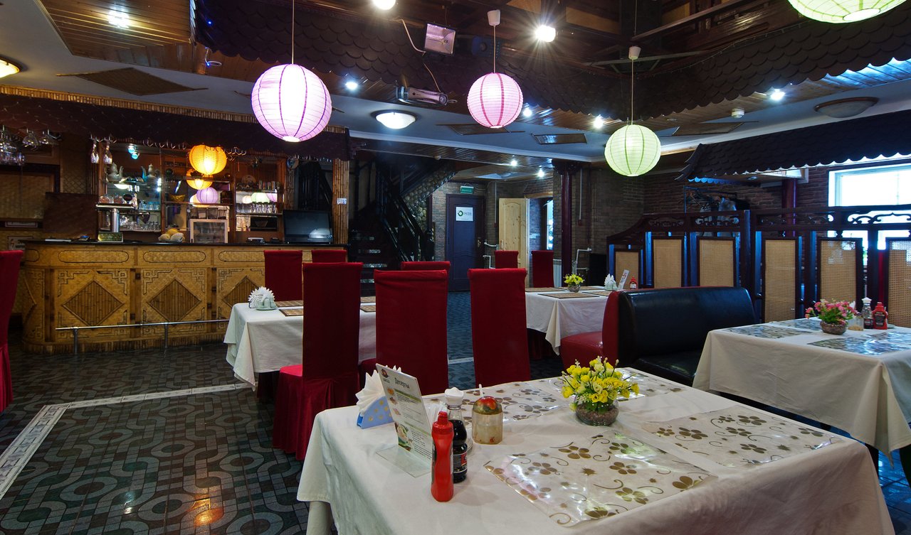 Мы не первый раз ходили в этот ресторан. Еда вкусная, тихое, спокойное и уютное заведение. Обычно кушаем фобо, супы у них вкусные. Из напитков очень вкусные лимонады и коктейли безалкогольные. Хорошие девочки обслуживали, оперативно выполняли заказ, в меню ориентируются не очень, вероятно потому, что оно очень большое. Музыка негромкая и ненавязчивая. Хорошее освещение, висят красивые китайские лампочки, диванчики есть, можно положить одежду и самой сесть удобно. Впервые попали сюда случайно, друзья привели. Они живут недалеко и хорошо знают этот ресторан. Цены нормальные.