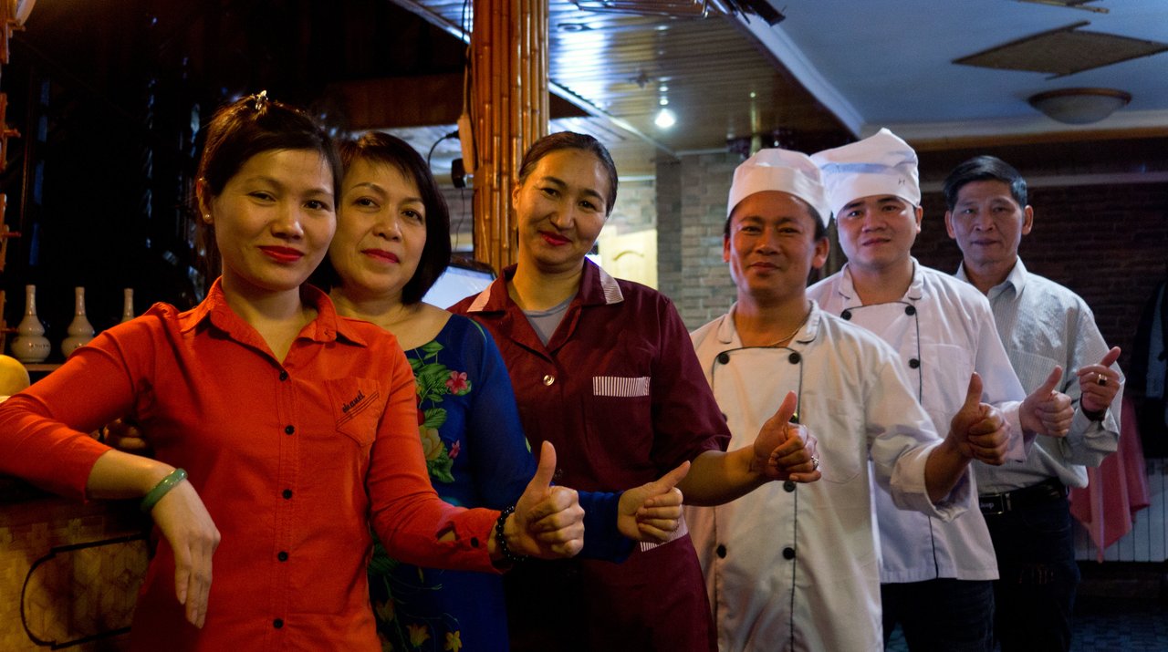 Качество работы данного ресторана мне нравится. Заказываю еду отсюда 1-2 раза в месяц. Ресторан расположен близко от моего дома, я давно его посещаю, случайно узнала о нём. Недавно делала заказ с доставкой на дом. Заказывала доставку из Delivery, доставили всё в пределах 30 минут. Из кухни я обычно беру фо-бо, нэм, иногда воки. Еду упаковали качественно, сохранила хороший вид. Само заведения я тоже посещала. У меня быстро принимали заказ, официанты нерусские, в ресторане атмосфера аутентичная. Мне кажется, если изменить дизайн заведения, то здесь будет всё супер. Это место мне очень нравится, оно очень хорошее!